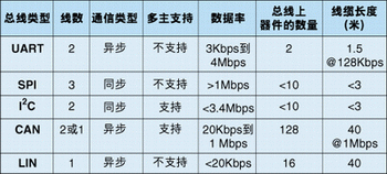微处理器中常用的集成串行总线是通用异步接收器传输总线、串行通信接口、同步外设接口(SPI)、内部集成电路(I2C)和通用串行总线,以及车用串行总线,包括控制器区域网(CAN)和本地互连网(LIN)。这些总线在速度、物理接口要求和通信方法学上都有所不同。本文将对嵌入式系统设计的串行总线、驱动器和物理接口这些要求提供一个总体介绍,为选择最优总线提供指导并给出一个比较图表(表1)。为了说