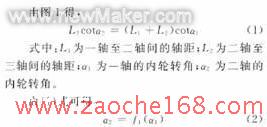 图1为某前双桥转向底盘转向时各转向轴内外转向轮的理想转角关系,由于不研究转向梯形机构,只讨论转向传递关系,所以只分析内侧的车轮的转角关系。