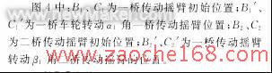 图2中:A1为车轮转向节臂初始位置;Al′为车轮转动角a1转向节臂位置;B1为一桥传动摇臂初始位置;B1′为车轮转动a1′角一桥传动摇臂位置。