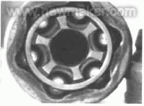 由于固定节中6粒钢球由工人手工进行安装,有可能发生少装的情况,如不及时发现,将出现质量问题,影响产品的正常使用和企业的声誉。汽车传动轴固定节是汽车驱动系统中一个重要的零部件,传动轴固定节的端面,如图1示。因此根据厂方要求设计了此套系统,系统采用无损检测,运用图象处理与模式识别技术,对CCD拍摄到的图象进行处理,作出漏装与不漏装判断,并对漏装工件进行声光报警。