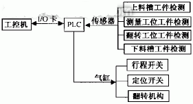 在这个系统中,实现了工控机与PLC的集成控制。工控机主要完成对图象的处理,PLC完成对现场控制信号的采集与执行元件的驱动,它们之间的通信采用I/O卡来实现。控制系统物理结构,如图4示。