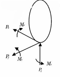 在一般情况下,地面作用于轮胎接地印迹处有3个方向的力Px、Py、Pz 和3个方向的力矩Mx、My、Mz称为六分力,如图1所示。正确描述滚动轮胎的力学特性是正确分析轮胎式车辆各种动态性能的关键环节。