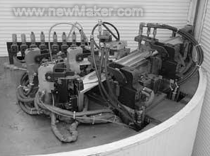 实际系统如图3所示。 关键是一个可用人工方式进行装卸的二站式旋转台。一个站有二个夹具,用于右手装配;另一个站也有二个夹具,用于左手装配。操作人员将焊好的组件卸下后,把它们放到柳腾箱中,再将一组新的冲压件装上去,推一下“循环开始”,转盘转动,焊接程序开始,过程重复。局部的墙壁随转盘转动,可以在焊接期间提供“遮拦”,以保护眼睛。整个系统再用金属薄板保护起来,以创造一个确保职工安全的“1级”焊接系统。