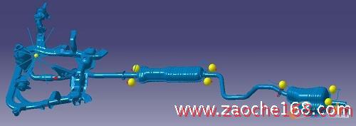 排气系统振动优化分析流程主要如下:1)建立有限元模型;2)计算排气系统模态;3)LMS 中导入FE模型和模态计算文件;4)定义激励力和输入输出点;5)计算排气系统传递到车身的激励;6)优化;7)重新校验排气系统传递到车身的激励。
