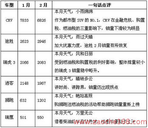 下面就让我们在新鲜出炉的2月SUV市场晴雨表中找找答案: