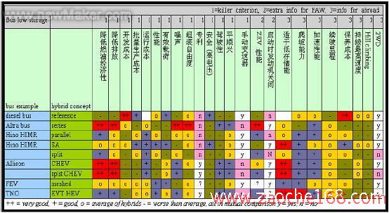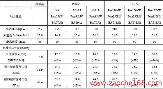 PHEV, SA, split and meshed hybrid —手动变速器;运行成本 — 可靠性、服务费用和燃油消耗;开发成本 — 系统复杂性、控制 + 实用性 + 专利;性能 — 最高速度 +加速性 + 爬坡能力 + 最大爬坡度