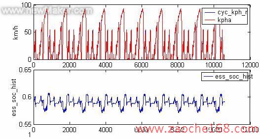 图4 为 UDDSHDV 循环工况下电池SOC 的时间历程。从图中可以看出,电池的SOC 在一定范围内波动,始终保持在一定水平上,无需外部充电。
