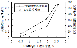 2.2 LPG中重质成份对残留物的影响