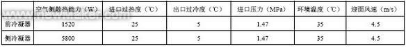 压缩机使用SS10 系列压缩机,采用双级多元平行流式冷凝器的布置方案,各冷凝器的面积、安装方式与原进口件一致,侧冷凝器的管厚加厚到20mm,前冷凝器的管厚为16mm,各冷凝器的散热能力列于表4。