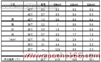 各工况差异最大仅有4℃左右,可见影响发动机水温的主要因素是高温情况下的车辆实际驱动负荷和