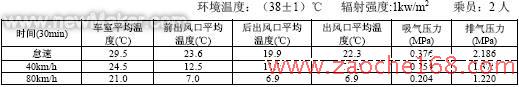 (2) 如果环境温度为35℃,估计车室内的温度至少还会降1℃左右。但是,40km/h 和80km/h 两组数据已经低于对手车型1~2℃。至少说明一点,空调系统在性能上并不比它差。
