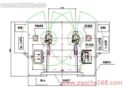 图4,副车架双机器人焊接工作站平面布局图