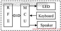 轮胎监测模块嵌入到轮胎内部,主要用来监测轮胎内部的气压和温度状况,并通过无线调制方式发送到主机显示模块,故轮胎监测模块主要包含传感器、微控制器、UHF发射器以及供电电池。
