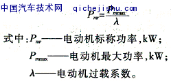串联混合动力汽车要在加速和最高车速情况下,计算车辆行驶所需功率,按照最大的计算数,同时考虑传动效率初步确定电动机功率,然后回代入式5和式6验证。确定电动机最高功率后可以根据式7相应的确定电动机标称功率。
