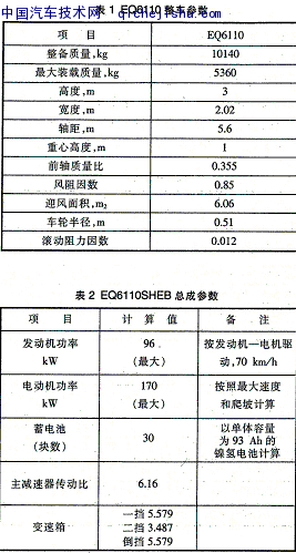 串联式混合动力城市客车以某国产客车为原型进行改造,并且保留了原车型的各种参数,见表l。