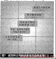 威伯科公司的产品开发以安全为核心,帮助和保护正常和非正常驾驶的驾驶员是电子控制系统开发的一贯思路从防抱制动系统(ABS)开始,到驱动防滑系统(ASR),再到电子制动控制系统(EBS)以及在其基础上增加的电子稳定控制(ESC),到现在自适应巡航控制系统(ACC),无一不贯彻这一思路。
