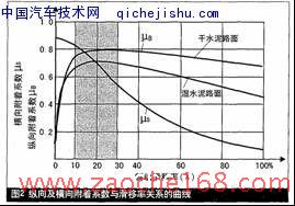 纵向附着系数μe的大小与制动距离长短有直接关系。横向附着系数μs大小直接决定汽车防侧滑的能力大小。