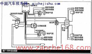 EBS(Electronic Brake System)电子制动控制系统将是未来的主要市场占有者,主要由转向角度传感器,桥控调节器,ESC模块,ABS电磁阀,挂车控制阀,制动信号传感器,比例继动阀等零部件组成,如图6所示。