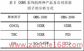OBS(On-Board Emission Measurement System)系列车载排放测量系统是由日本HORIBA公司开发的。由防振型排放测量单元、主控笔记本电脑以及相关软件、传感器和带有PITOT流量计的采样接头等组成。现在普遍使用的OBS系列包括OBS-1000和OBS-2000两种系列型号。这两种型号主要差异在于对不同排放因子的分析单元上的不同,但是测试流程和制造理念还是相同的。表3列出的是OBS的两种产品在对排放因子分析时各自使用的分析仪。从表3中可以发现,OBS-2000系列对OBS-1000系列进行了改进。分析方式的改进增大了仪器分析的灵敏度,而且减小了整套仪器的体积和重量。