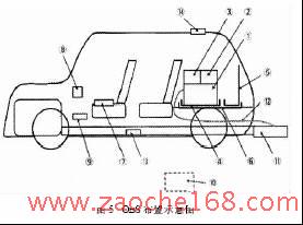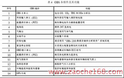 OBS和其他PEMS系统一样,可以很方便地安放在被测车辆上。图5所示的是OBS系统在被测车辆上的布置示意图。表4列出的是OBS各组件及其功能(表4中的序号对应图5)。