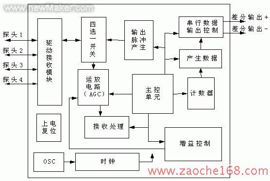 对于很多司机尤其是新手来说,倒车无疑是件非常头痛的事,倒车雷达正好可以帮司机解决这个难题,因此越来越多的商家进入了这个市场。随着汽车普及率的逐年增加,消费者在将汽车作为交通运输工具的同时,对汽车配置有了更多的要求,尤其是对舒适性和安全性提出了更高的要求。从目前市场情况看,国内倒车雷达生产厂家都是使用单片机配合外围运放、锁相环电路完成超声波测距并提供报警的工作,缺乏单芯片方案,而使用单片机方案要求生产厂家必须具备开发软硬件的能力,而且利用软件控制存在不稳定的因素。如果能用专用芯片实现整个系统功能,对倒车雷达生产商来说,不仅能降低开发和生产成本,对整机的可靠性也有很大提高。