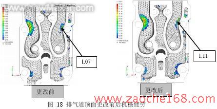 (4)根据排气道顶部疲劳计算结果,建议更改材料后,增加排气道与螺栓孔之间的厚度。