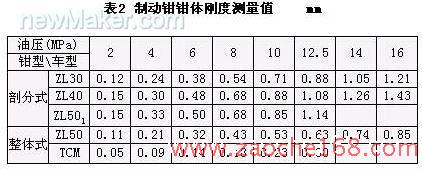 3.5 钳体刚度取决于钳体结构形式,并影响制动性能,影响程度有待更深入地研究。