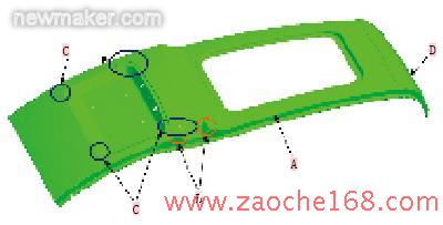 3. 在C处,因拉延材料流动不均易出现表面不光顺。