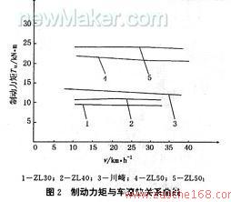 由图3可知,对于单钳制动器(如ZL40型),油压增大时制动力矩增加缓慢。对于双钳制动器(如ZL50型) 制动力矩随制动油压增高时,制动力矩快速增加,但各机型的制动力矩都呈线性增长。