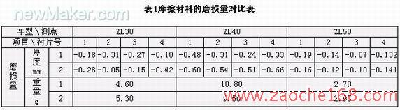 3.4 摩擦衬片不同测点位置的磨损量不同,同一制动器的两摩擦衬片的磨损重量差值不大,其原因与摩擦材料化学成分的性能有关。