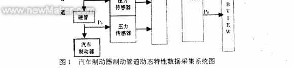 我们应用LabVIEW对汽车制动管道进行动态测试。主要让LabVIEW完成控制信号的产生,即产生阶跃等控制信号;实现A/D数据采集;文件存储、曲线打印等数据处理等功能。