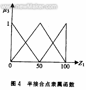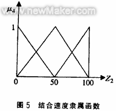 其中μ3为半接合点隶属度,向为结合速度隶属度;Z1为半接合点的值,Z2为结合速度的值。同样道理,为了计算隶属度的方便,半接合点的值和结合速度的值都先取为从0到100之间变化,具体计算最后输出时再换算过来。