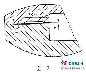的锻件选用,毛边槽桥部高毛边槽桥部b=14mm,毛边槽型槽宽b1=38mm,毛边槽断面积Sk=278mm²,毛边槽型槽高h1=5mm,入口处半径R=2mm。毛边槽形状及尺寸见图2。