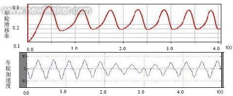 控制周期取决于车速信号采集频率,制动压力调节器的响应时间和控制逻辑运算时间之和。在仿真模型里进行了控制周期对ABS 控制影响的分析。