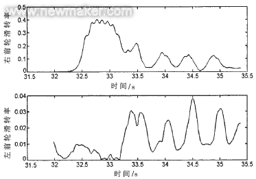 图6 ASR对开路面上左右两侧驱动轮轮速比较