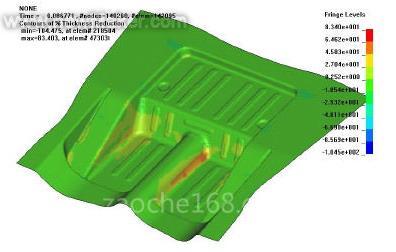 以上仅为我们应用eta/DYNAFORM 软件进行模具冲压仿真分析,应用验证了该产品在模具制造中存在的缺陷,为产品开发、模具制造等提供理论依据。eta/DYNAFORM 作为一种优秀的钣金成型专用仿真分析软件,具有强大的功能,在公司的钣金件新产品开发及模具制造中应用越来越广泛,从汽车的覆盖件(主要为钣金件)到各类钣金成型件。eta/DYNAFORM 将在汽车模具、部件设计加工方面有效加快新产品的开发进度,大大提高了工作效率,降低成本并提高产品质量,大幅提升和增强企业的技术水平和竞争力。总而言之,eta/DYNAFORM 软件给我们提供了强大而丰富的功能,还有待于大家共同研究、探讨。