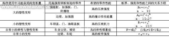 汽车上采用高强度钢板的零件可分为三大类:外板件、内板件和结构件,这三类零件对强度的要求如表3。