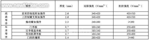 另外,前、后门的车门防撞杠亦采用了抗拉强度为370MPa 和440MPa 的高强度钢板来满足侧碰要求。