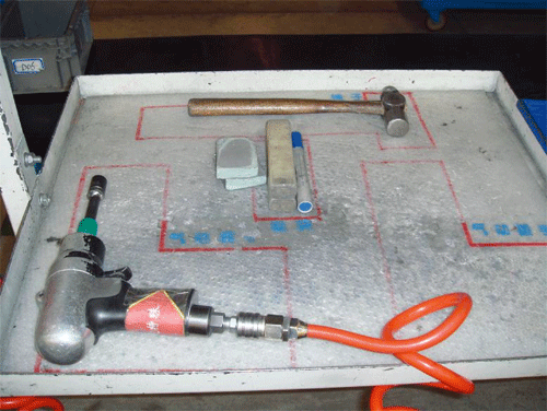 (2) 通过JES(Job Element Sheet,工作构成表)分析,制定SWI(标准作业书);细化加工流程及操作方法,规定标准路径(如:用路线标示从零件架到白车身的最短路径)、标准方法(如:左手握紧风扳机,右手食指与拇指将螺栓由铰链胎里侧送入螺栓孔打紧)。