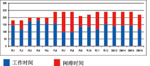 图2中,圆圈显示出在平均作业时间表中,占作业时间最长的工序(瓶颈工序)。现阶段瓶颈工序为PL7、PL8、PL11。