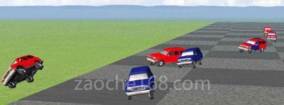 图3 工程师在以 80km /h的时速下执行 fishhook 操控实验时,配有 ESC 和未配有 ESC 的 SUV 的可视化行为演示,其中,蓝色的 SUV 配备了经过优化的 ESC,红色 SUV 未配备 ESC