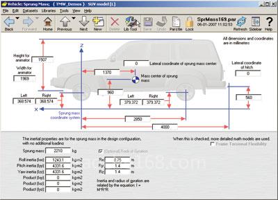 图 1 使用 CarSim 用户界面设置车辆参数 汽车电子领域内整合主动安全机制的趋势愈演愈烈,迫使汽车制造厂商将防侧翻功能整合到传统汽车底盘控制系统之中。">
