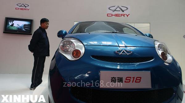 在 3 月 22 日展会上拍摄的奇瑞公司研制的首款电动能源汽车 S18 。">