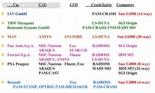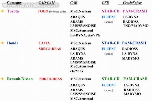 世界著名的发动机研发机构如AVL、Ricardo、FEV等主要使用ABAQUS、MSC Nastran 以及ANSYS等软件。 据不完全统计,世界主要汽车生产商使用的软件如下: