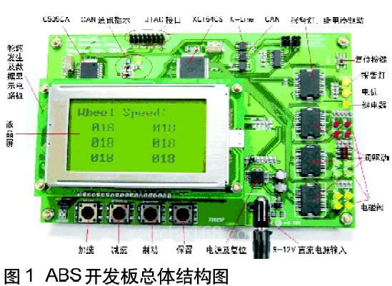 六通道ABS的开发板验证了ABS软件代码的正确性。该开发板自成体系,具有轮速发生、数据显示、故障诊断、外围电路驱动和实时通信等功能。另外,主控芯片XC164CS采用了先进的在片调试接口(OCDS),大大提高了开发效率。