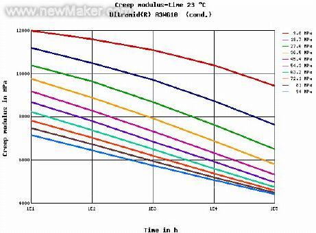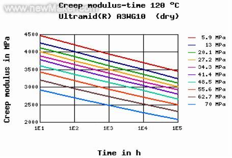 刹车踏板机构中hysteria 是一个槊料件,材料为尼龙66加50%的玻纤。考虑其工作环境,刹车踏板机构必须能在摄氏90度高温下正常工作。 而在这样的高温下,材料蠕变给零件带来的变形应该考虑。蠕变的变形有多大? 这在设计初期就必须考虑。然而如果通过实际试验来得到其变形大小是不实际的,例如零件在10000小时的变形有多大?只有1年以后才知道。零件在100000小时的变形有多大?只有11年以后才知道。这对产品的设计是不实际的。我们必须在开模具之前,了解变形的大小。