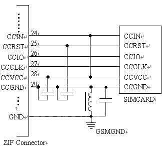 系统中,TC35I模块工作在4.5V电压下,系统上电后必须在ZIF连接器的15脚(/IGT)加时长100ms以上的低电平,且信号的下降时间应小于1ms,否则模块不能正常启动。启动后15脚应保持高电平。启动后终端便可向模块串口发送AT指令对模块进行控制实现初始化、短消息发送、语音通话等功能。模块提供了ISO 7816-3 IC Card标准兼容的SIM接口,额外的CCIN引脚用于指示SIM卡是否连接上,由于目前移动运营商所提供的SIM卡均不提供该信号,所以在设计电路时将CCIN与CCVCC相连,考虑到对语音质量的影响,SIM卡的CCGND端通过电容和电感耦合到GSM地,为SIM卡提供一个隔离地,以屏蔽其它信号线对SIM卡的影响。图2给出了SIM卡的连接电路。