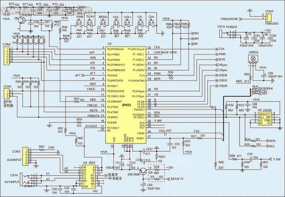 图2:LCD TV方案中的SP633及其外围控制电路图