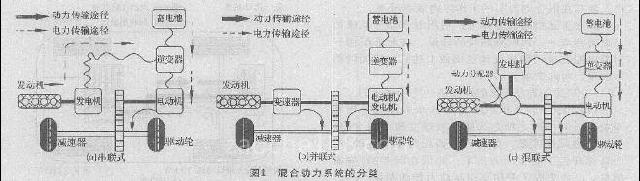 目前,有关混合动力电动汽车动力传动系统的研究在车型开发和仿真分析中都有了快速的进展。根据混合动力驱动的联结方式,混合动力系统主要分为以下三类: