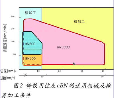 图2 铸铁用住友cBN的适用领域及推荐加工条件